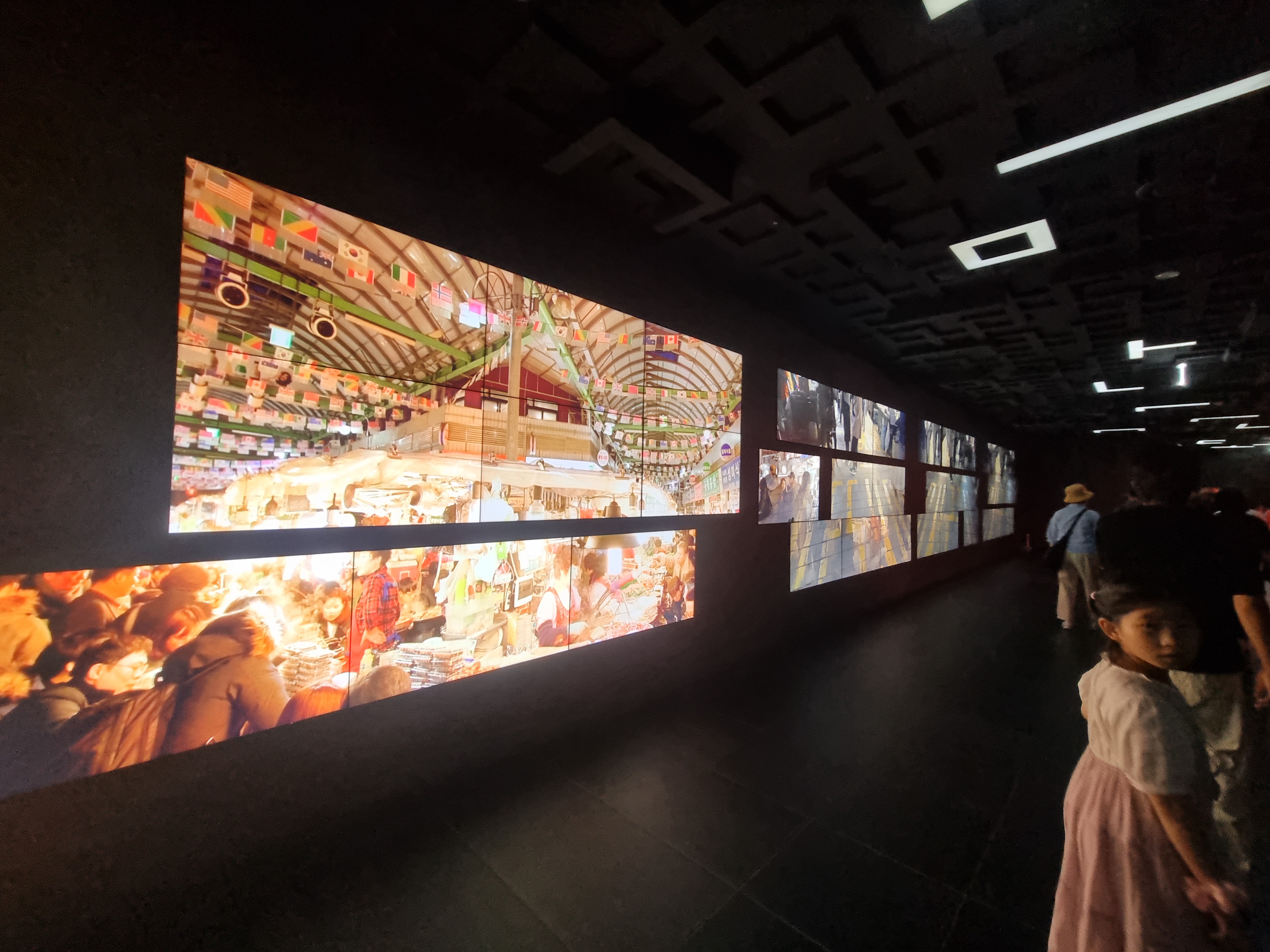한쪽 벽에서는 한국 문화와 관광지를 보여주는 스크린이 있습니다. 영상을 감상하며 유유히 줄을 서서 걸어가면 됩니다.