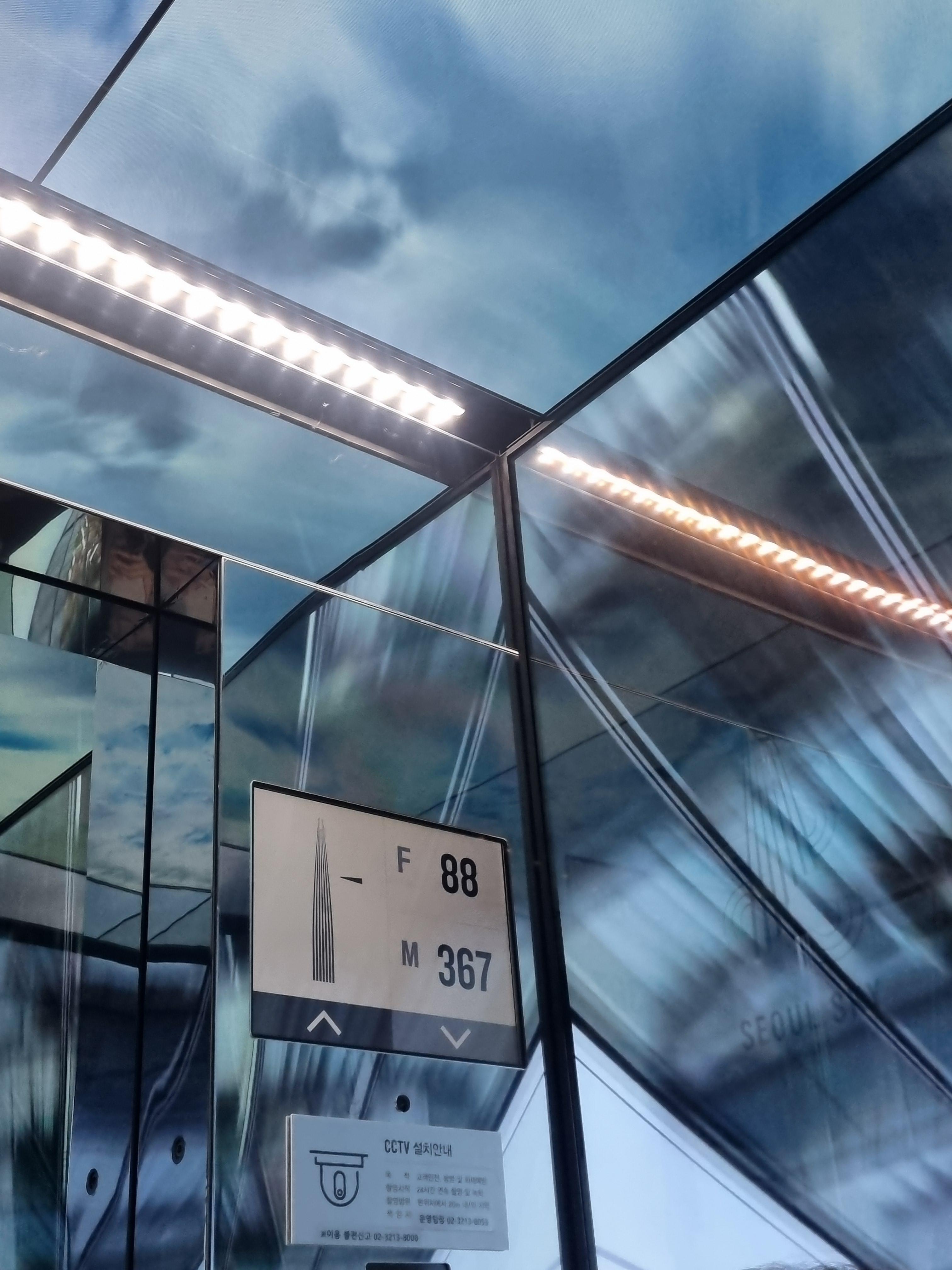 엘리베이터는 한 1분이 안되는 것 같은 짧은 시간 후 117층에 도착했습니다. 472미터나 올라간 것이라고 합니다.