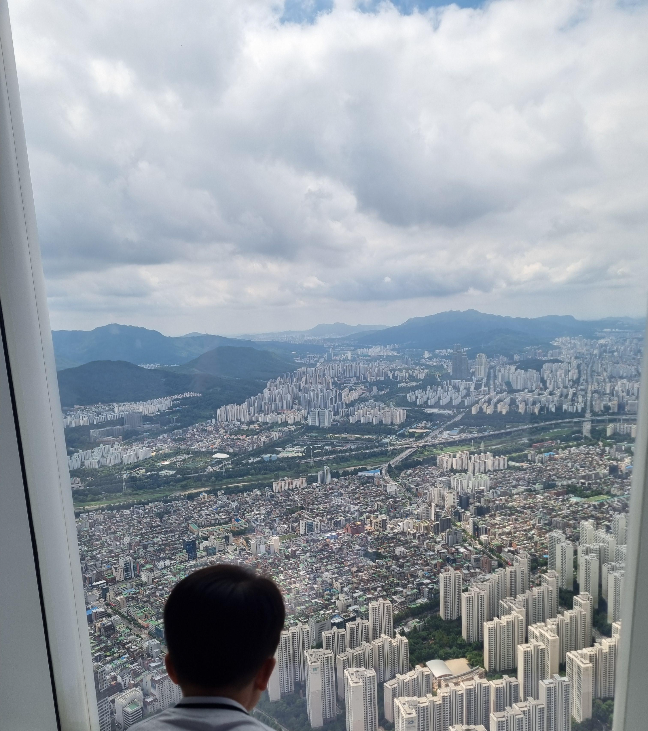 117층에서 내려다본 서울의 모습입니다. 아파트가 꽤나 많이 보이네요. 아이와 함께 우리 집 찾기 놀이도 해보고 남산타워와 한강 찾아보기도 해 보았습니다.