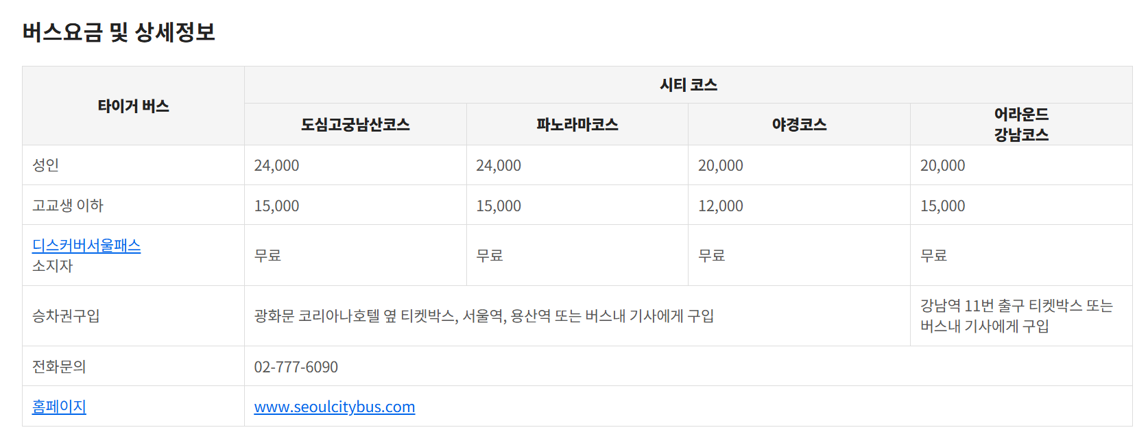 시티투어버스 요금은 아래와 같습니다. 아래는 정가 요금이고요. 여러 이커머스 쇼핑몰을 찾아보시면 할인 티켓을 찾으실 수 있으니 정요금 내시지 마시고 할인 요금으로 이용하는 걸 추천드립니다.