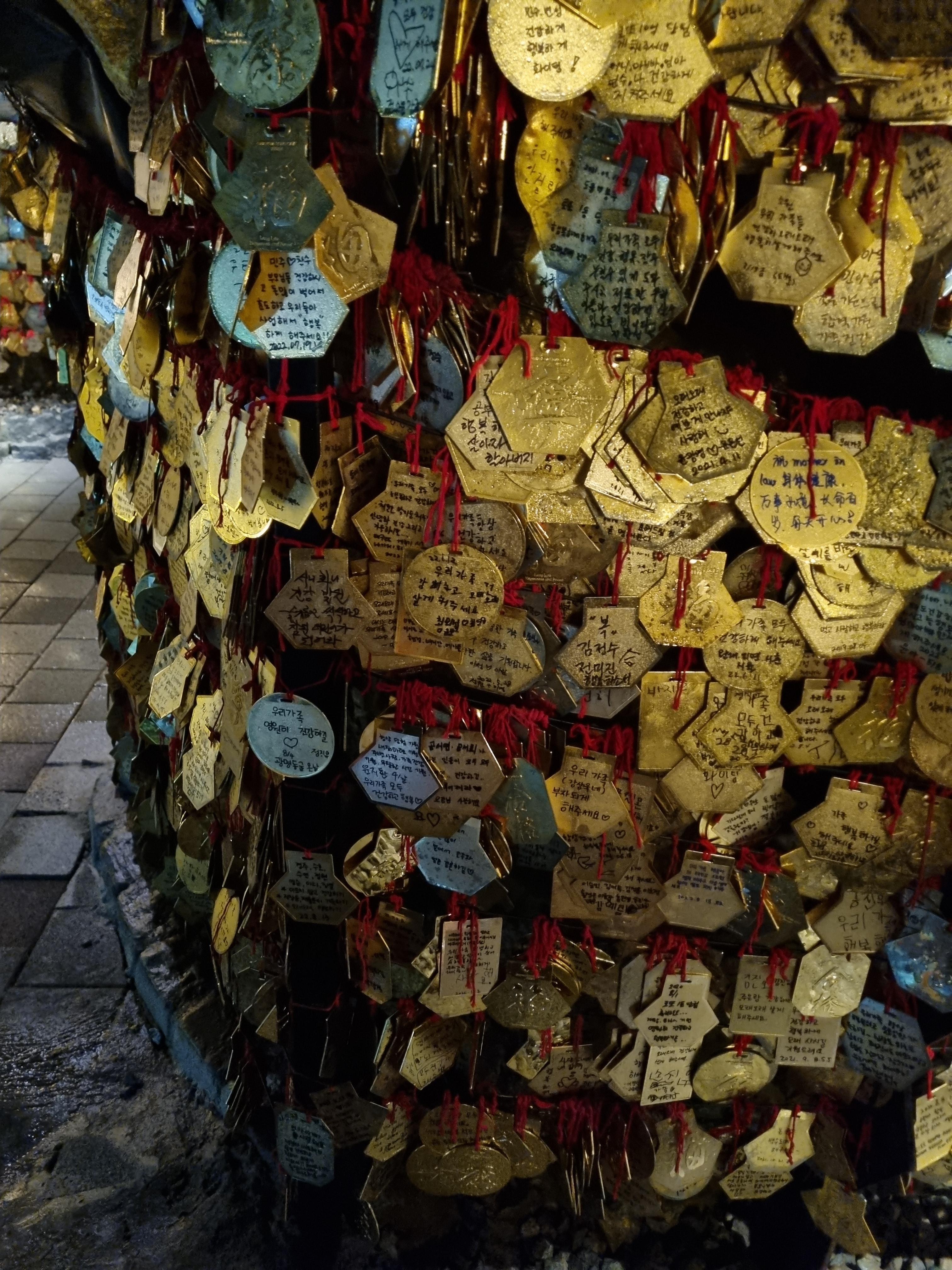 광명동굴을 구경하다 보면 소원을 비는 공간도 나옵니다. 황금 패는 하나 구입해사 소원을 쓰고 걸어 놓으면 소원이 이루어진다고 합니다. 비싸지 않아 저희 가족도 하나 구입해서 달고 왔습니다.
