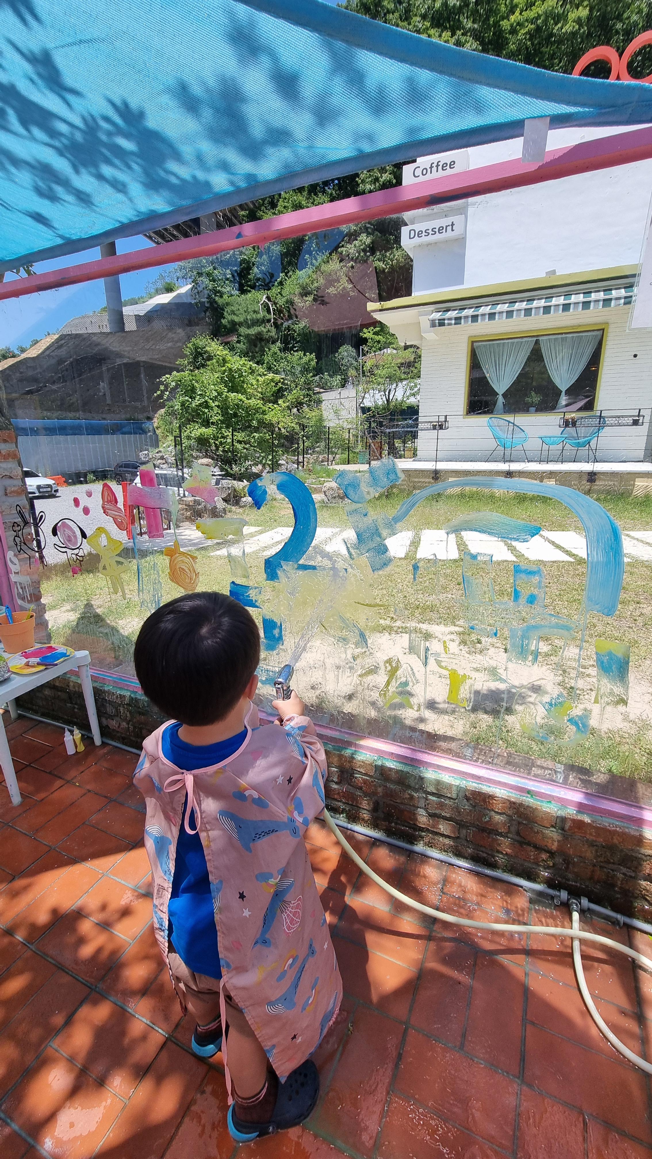 각 체험 공간에는 호스가 있어 그려놓은 그림을 물로 지우고 또다시 그려보고 할 수 있습니다. 호스로 물 뿌리는 거도 아이가 무척 좋아했던 것 같습니다.