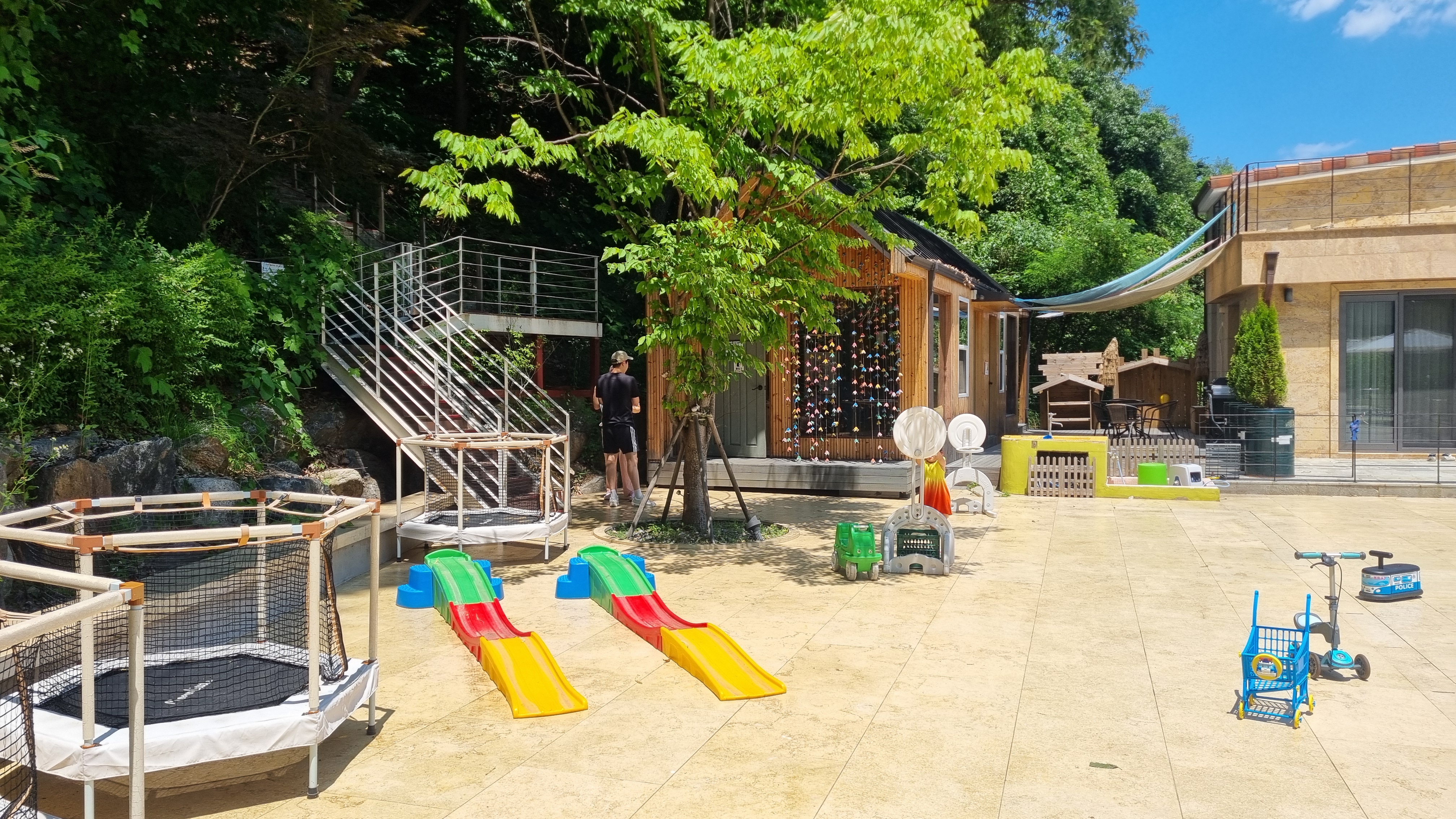 2층 테라스에서 계단을 타고 올라가면 숲놀이터 공간도 나옵니다.