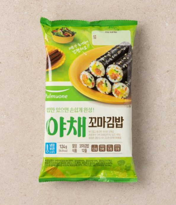 세 번째는 도구는 아니지만 음식 키트. 바로 풀무원에서 나온 야채 꼬마김밥 세트입니다. 저는 마트에 직접 가서 구입했는데 쿠팡이나 이마트몰 등 웬만한 온라인 판매처에서도 다 구매할 수 있는 것 같습니다. 일일이 야채와 김을 사고 썰어 놓는 수고를 덜 수 있습니다. 가격도 온갖 재료 다 사는 거보다 저렴하고 만들기도 정말 간편해서 강력 추천합니다.