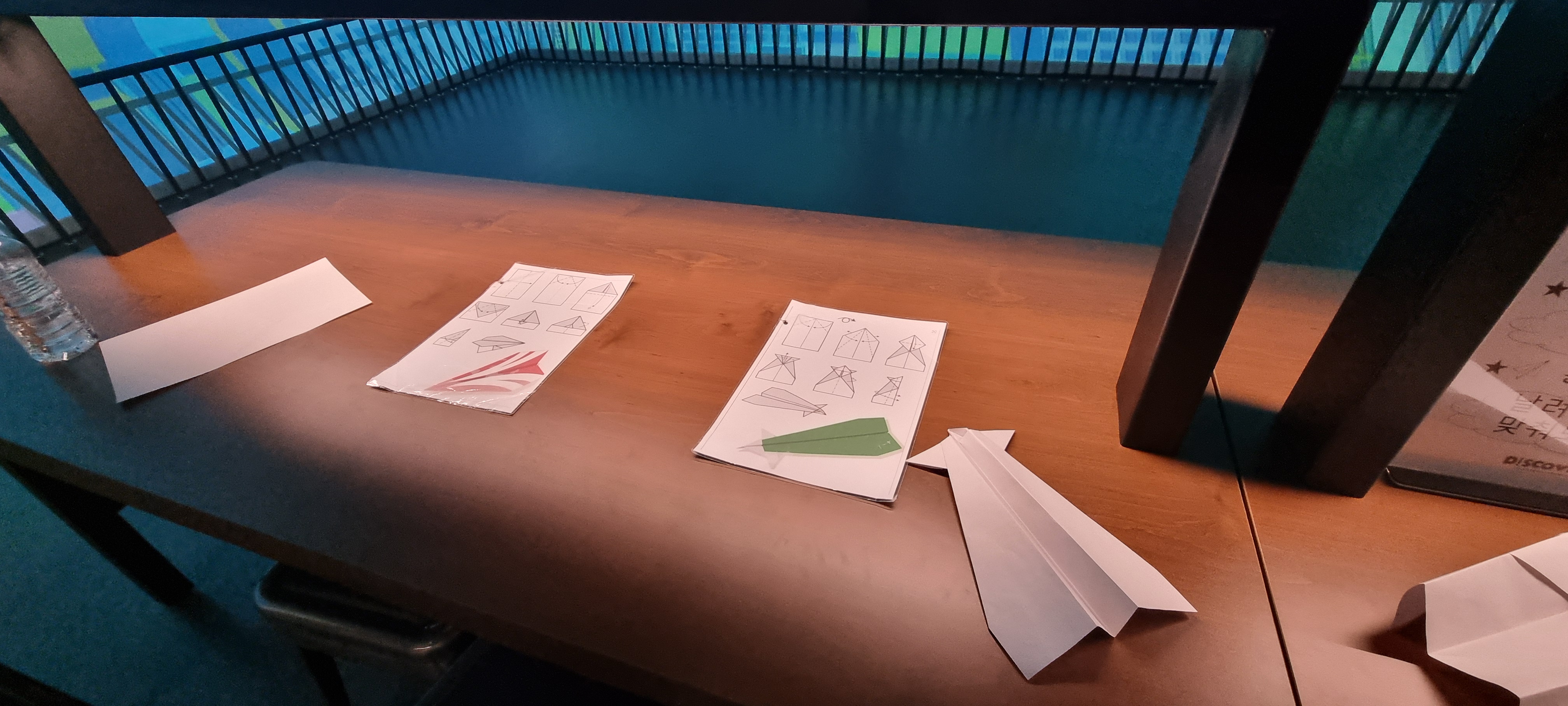 종이비행기 설명서를 보고 다양한 모델의 종이비행기를 접어 볼 수 있다