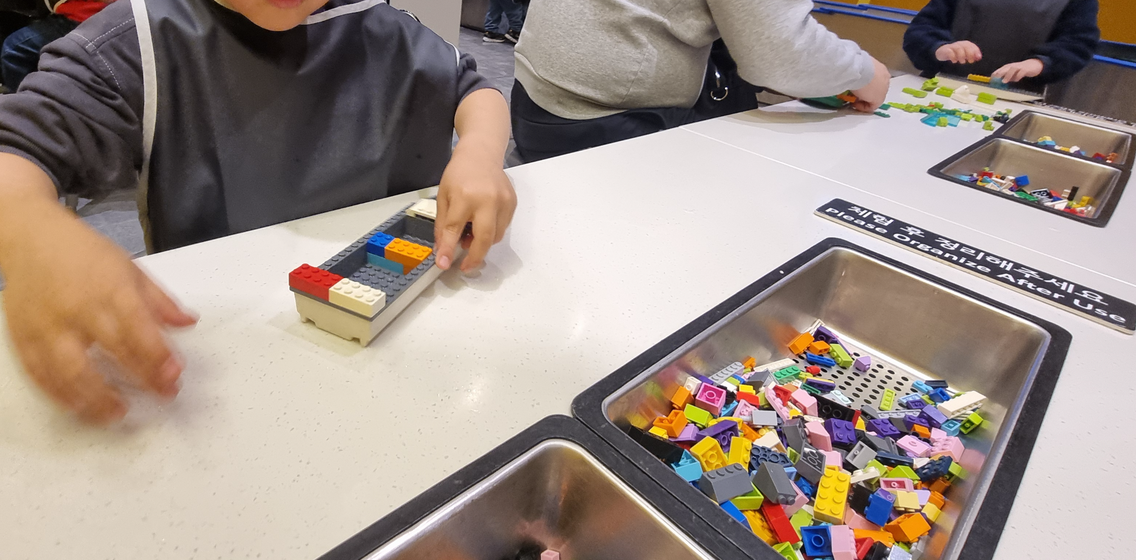 테이블에 구비되어 있는 레고로 자동차를 만들어서