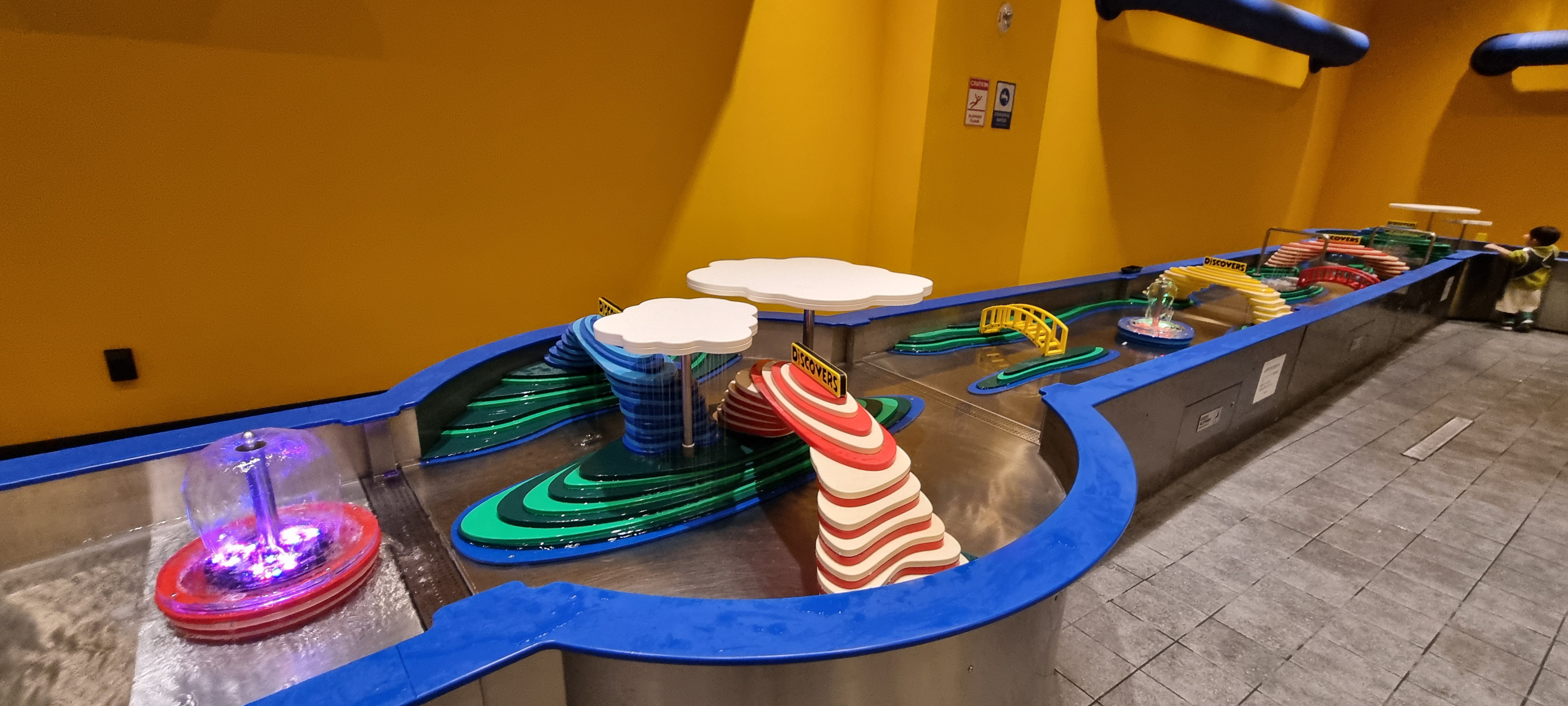 여러 가지 터널과 분수로 꾸며진 수조에