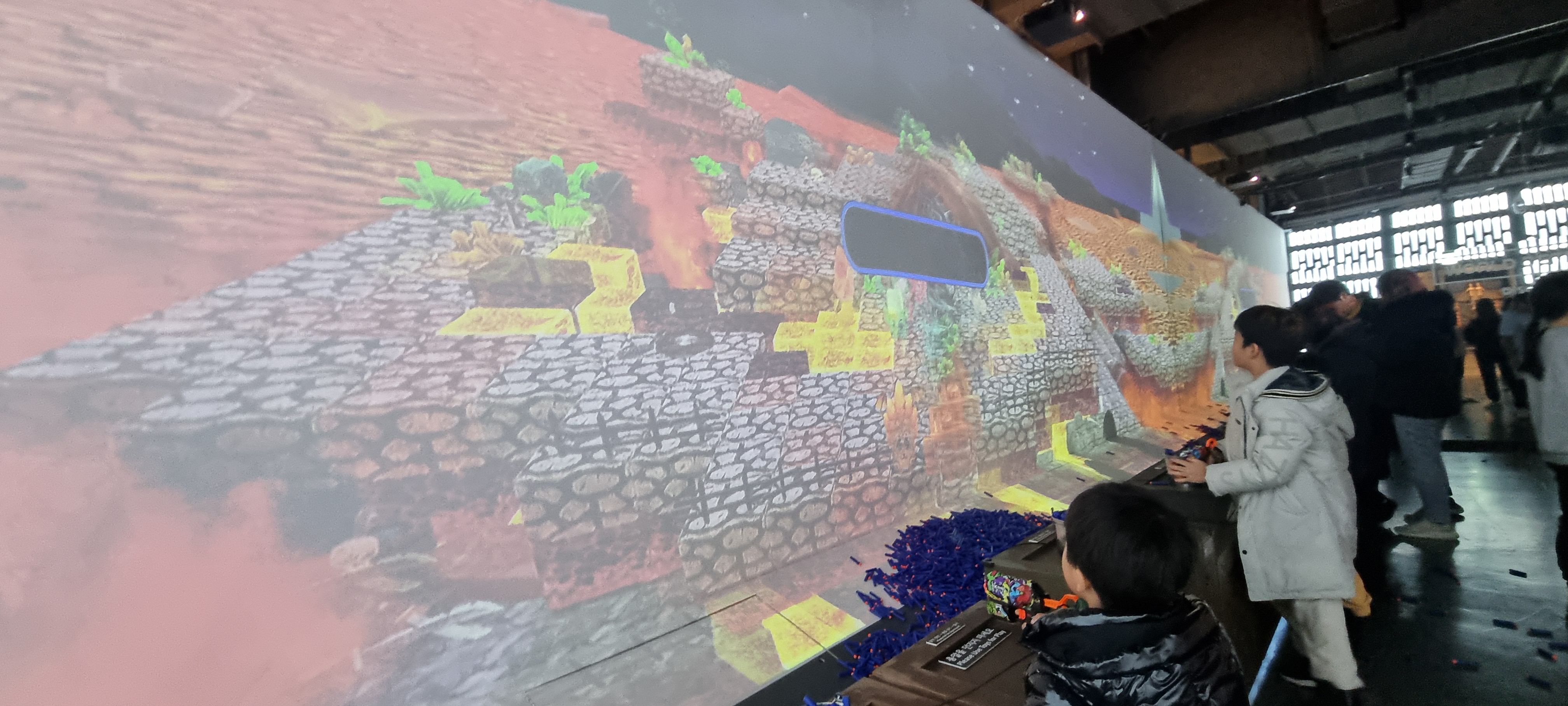 대형 스크린에 날려 벽을 맞추면 스크린에 비행기가 뿅 하고 나타나기도 한다
