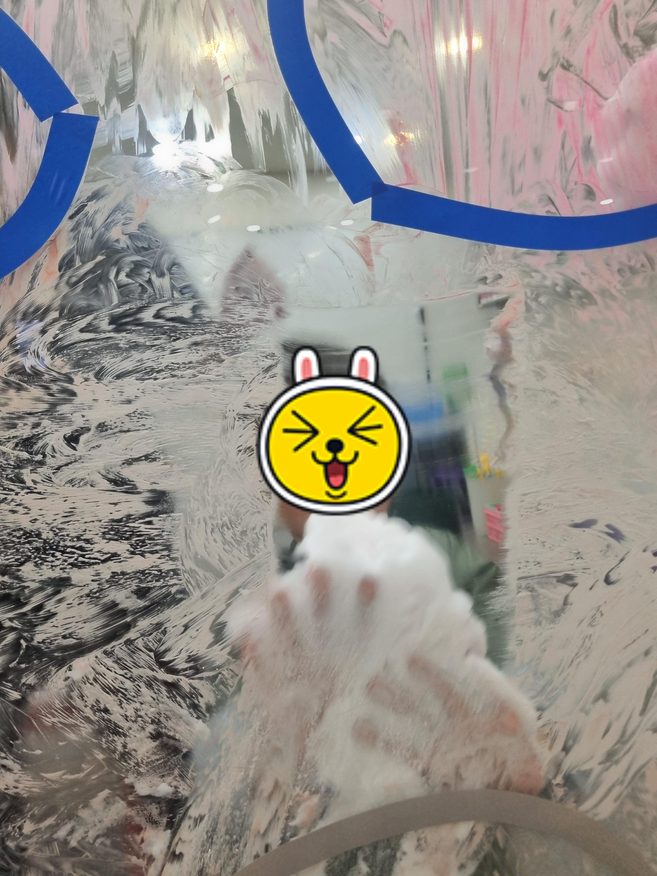 물감으로 신나게 벽을 칠한 후 거품놀이도 해본다.