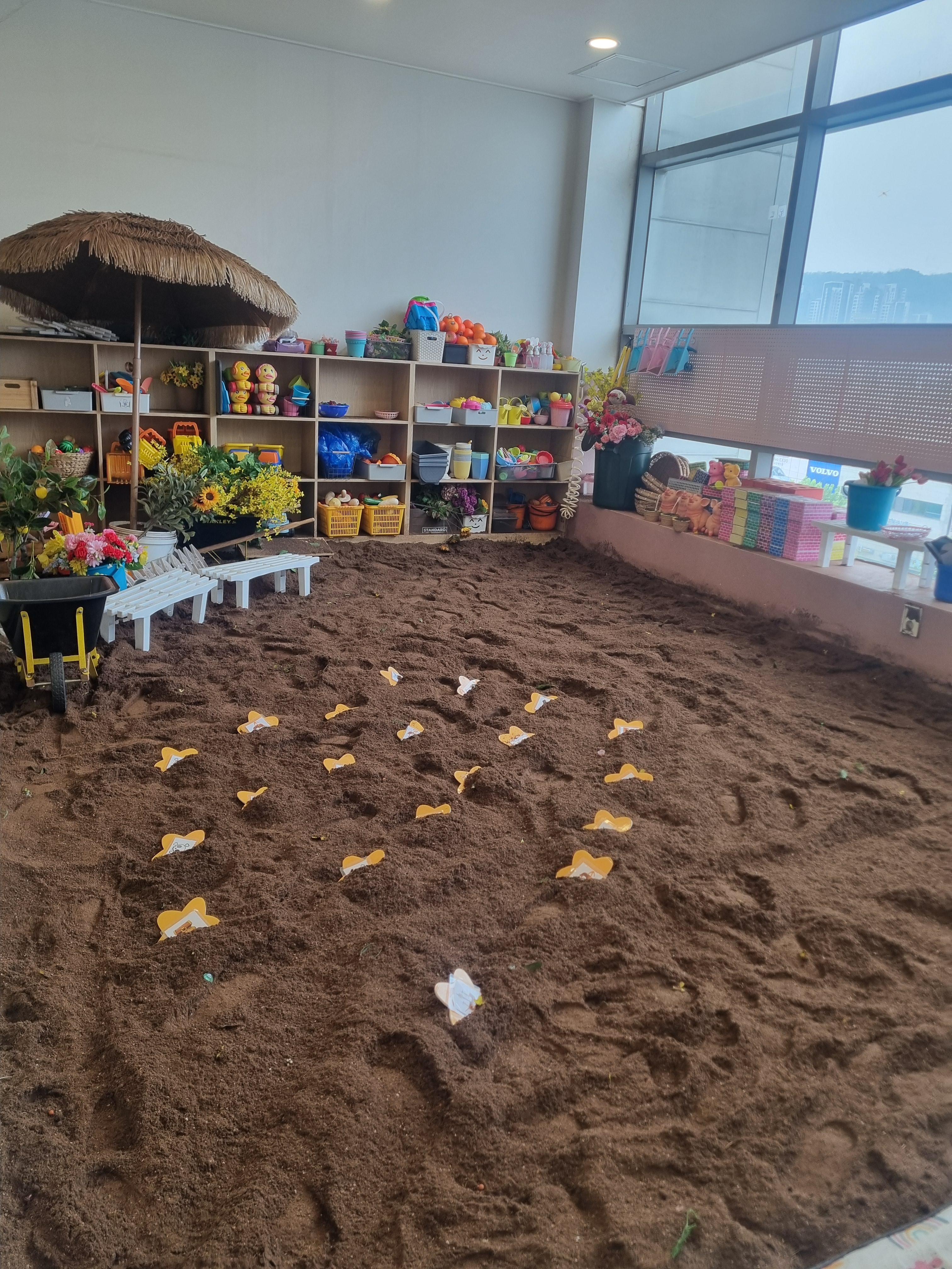 선생님 한분과 함께 오감놀이를 마음껏 해 볼 수 있는 놀이 공간이다.
