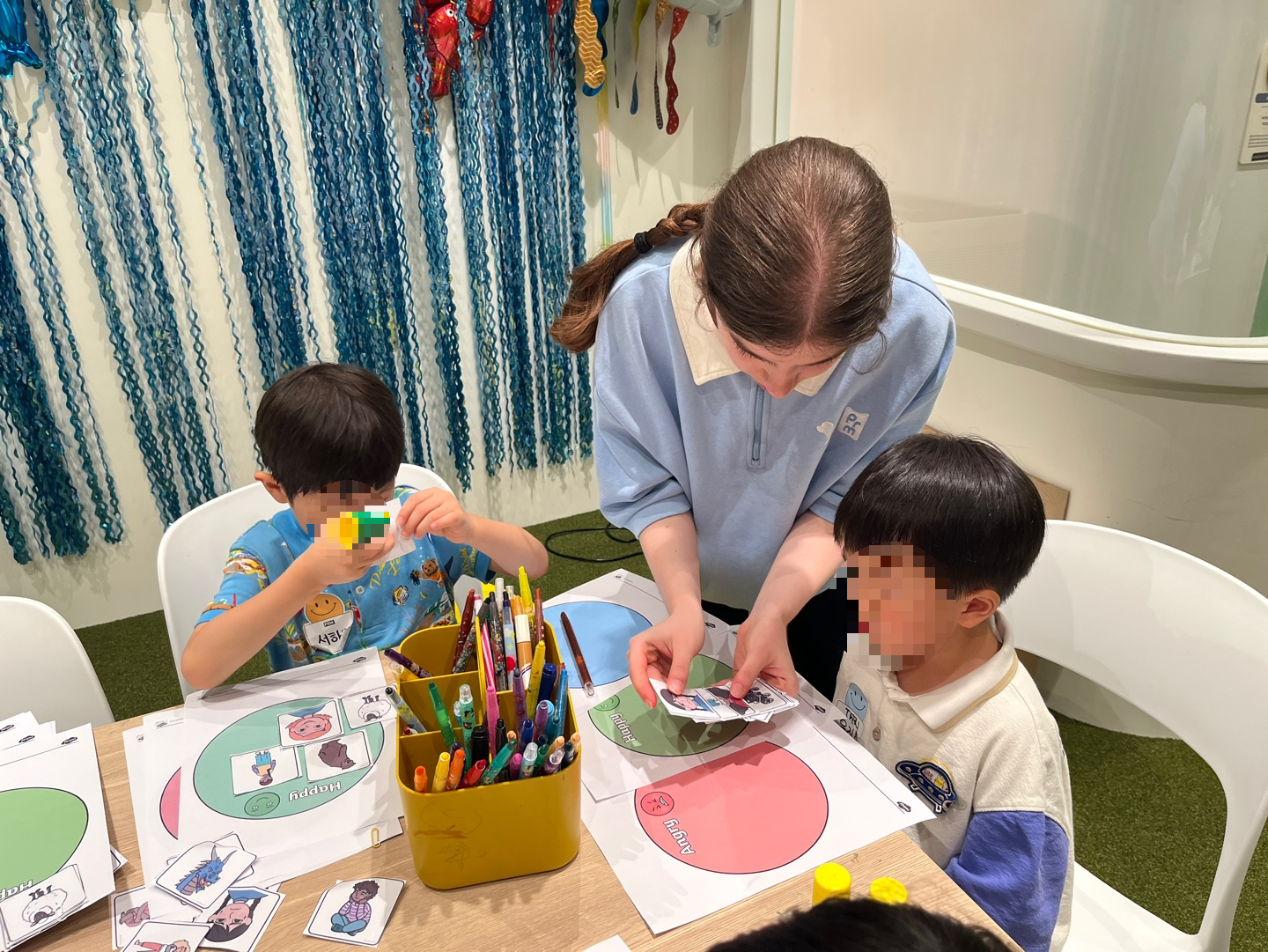 키즈카페 같은 공간에서 원어민과 재밌게 놀며